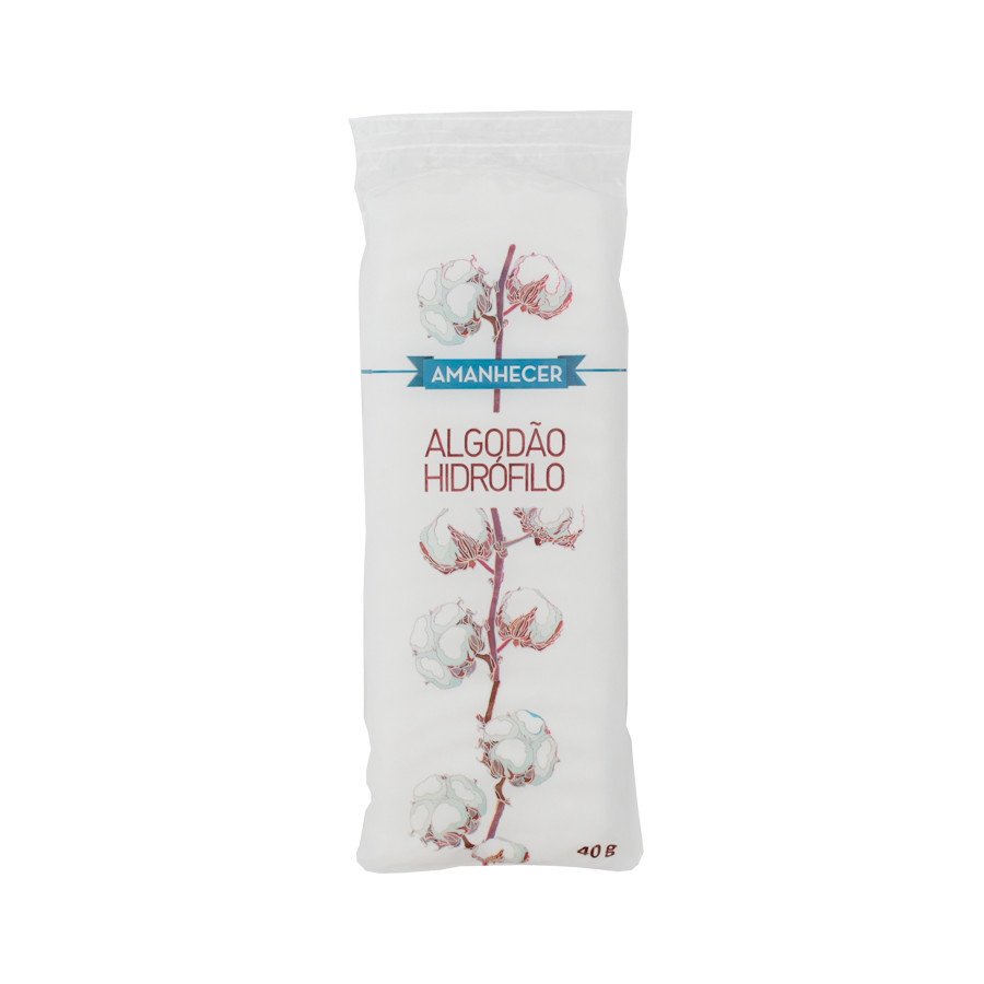 Pacote branco de algodão hidrófilo AMANHECER com ilustração de ramo de algodão.