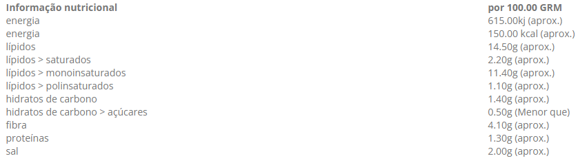 Ingredientes: Azeitonas, água, sal, estabilizador de cor (gluconato ferroso).