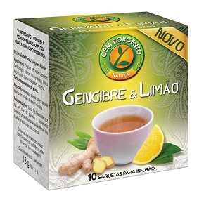 Embalagem de chá Gengibre & Limão natural com chávena e ingredientes