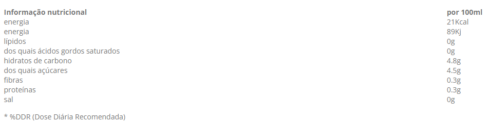Ingredientes: Agua, Sumos De Laranja (20%), Maçã (12%), Cenoura (11%), Manga (8%), Lima E Limão: À Base De Concentrados, Regulador De Acidez: Ácido Cítrico, Antioxidante: Ácido Ascórbico, Edulcorantes: Sucralose E Acesulfame-K. Teor Minimo De Sumo: 40% Fruta E 11% Cenoura.