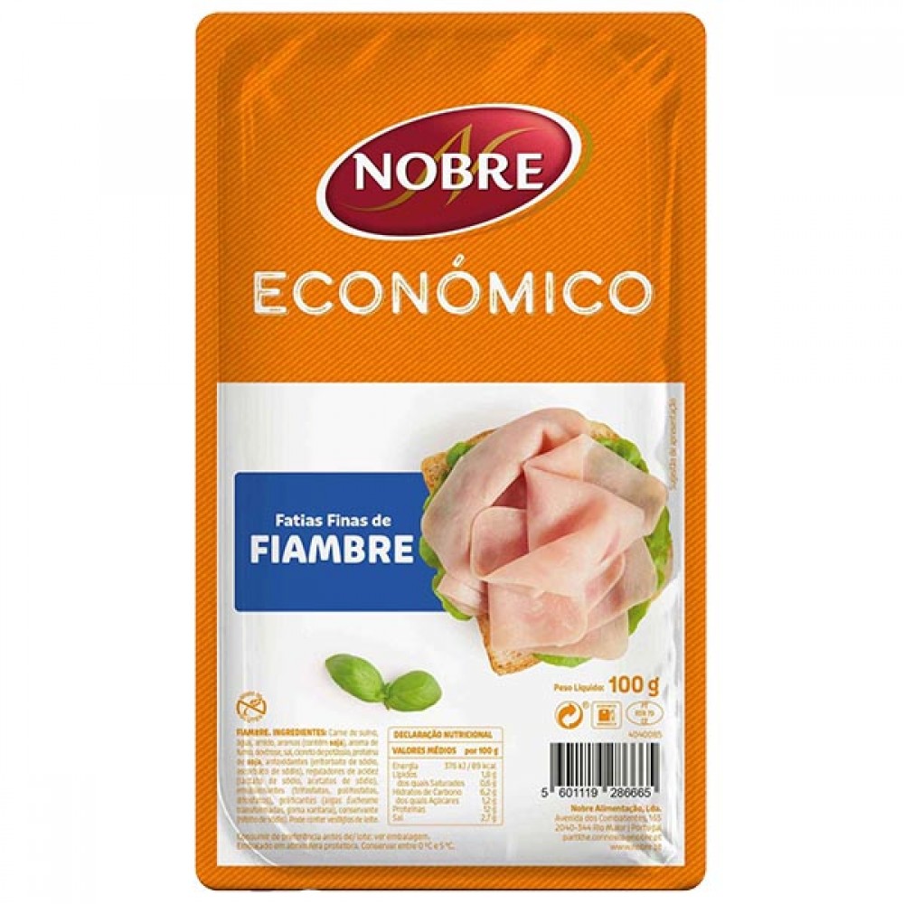 Pacote de fiambre Nobre Econômico com fatias finas visíveis