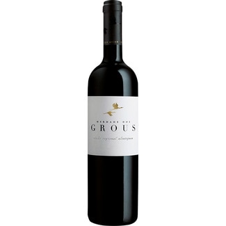 Garrafa de vinho tinto Herdade dos Grous com rótulo branco