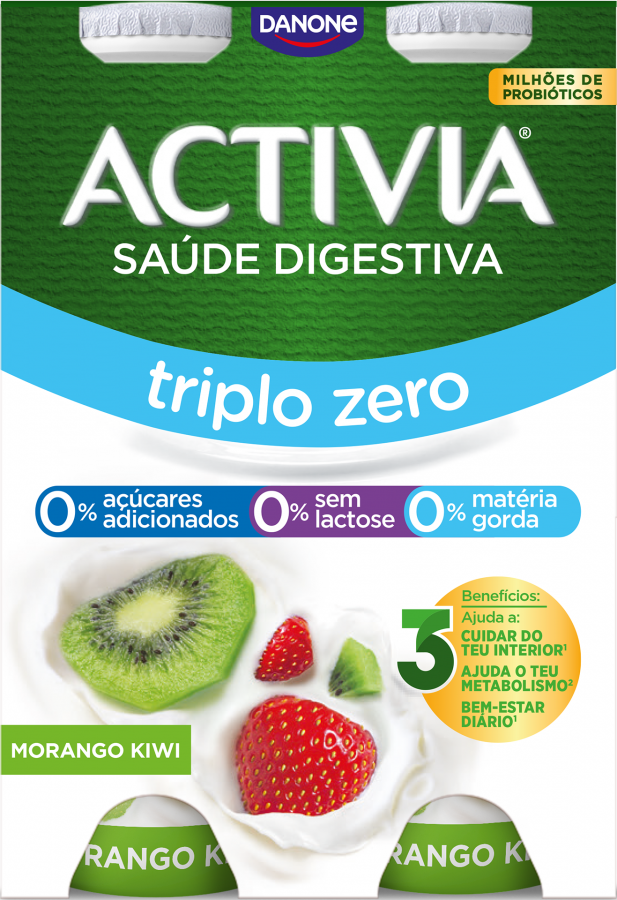 Ingredientes: Leite desnatado pasteurizado, concentrado de sólidos lácteos rehidratado, morango (1,6%), leite desnatado em pó, nata pasteurizada, kiwi (0,4%), aromas, concentrado de cenoura negra, edulcorantes (sucralose e acessulfame K) e bifidobactérias e fermentos láticos.