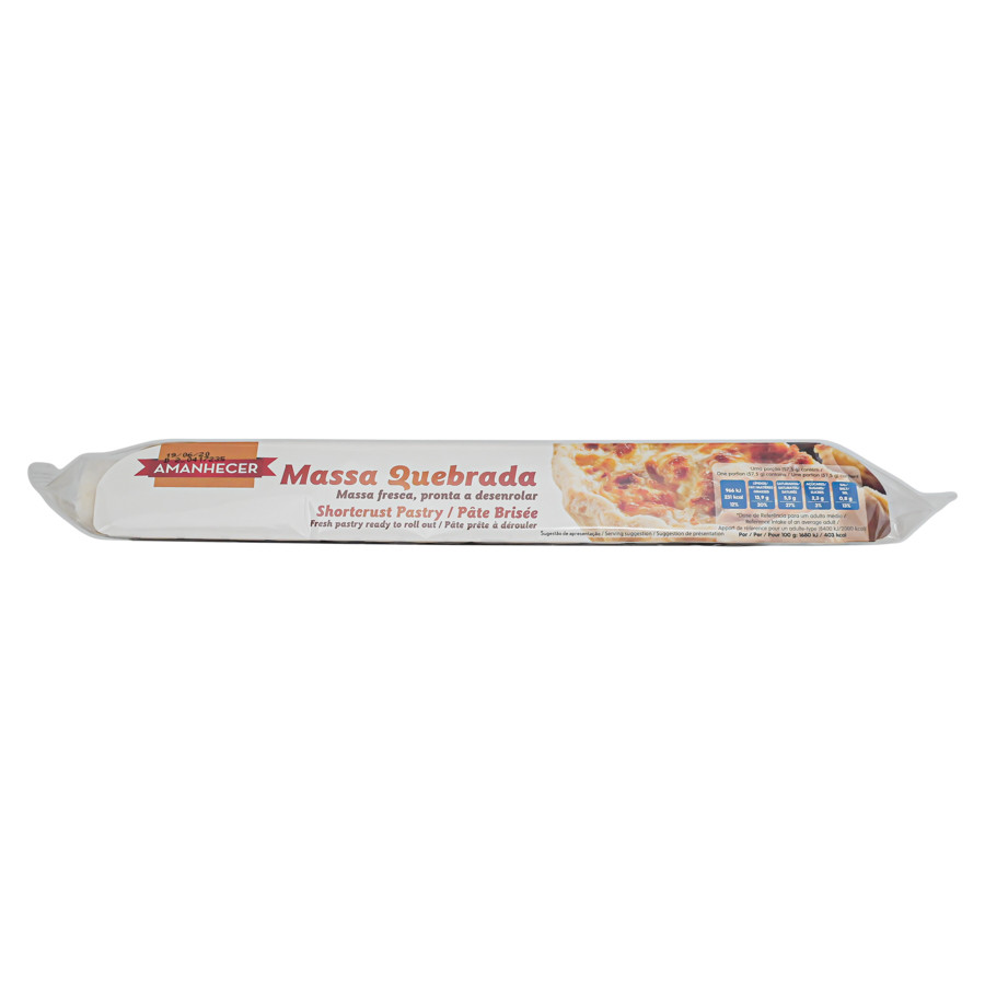Rolo de Massa Quebrada Amanhecer com embalagem branca e imagem de tarte