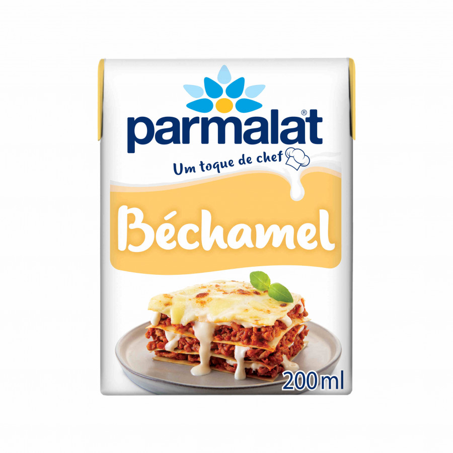 Embalagem de molho béchamel Parmalat 200 ml com imagem de lasanha