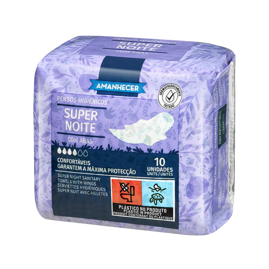 Pacote de pensos higiénicos Amanhecer Super Noite lilás com 10 unidades