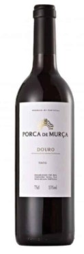 Garrafa de vinho tinto PORCA DE MURÇA do Douro com rótulo branco e tampa preta