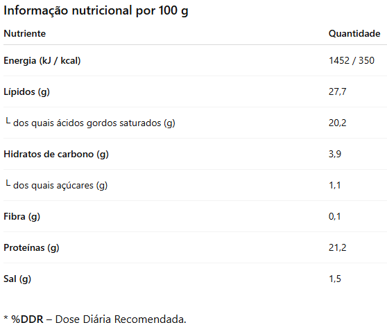 Ingredientes: Leite De Vaca, Cabra E Ovelha Pasteurizados, Cloreto De Cálcio, Coalho, Sal, Fermentos Lácteos