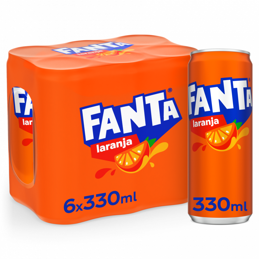 Pacote de 6 latas de refrigerante Fanta laranja 330 ml