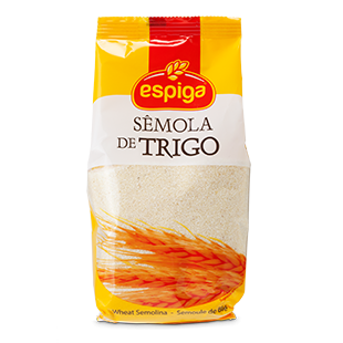 Embalagem de sêmola de trigo da marca Espiga com espigas de trigo